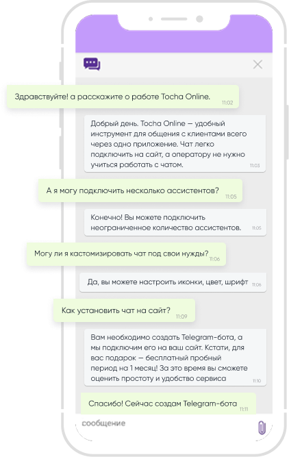 Tocha подключает Telegram бота к вашиму сайту